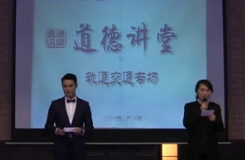 开场前,通常播放道德主题暖场音乐, 通过钟声、流水声使人静心感受道德氛围, 主持人结合主题,设计提出相关问题,引导观众带着思考走进道德讲堂。